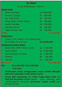 Proyeksi keuntungan: harga jual di tiap tiap tempat bisa berubah(mengikuti harga sewa dan kebutuhan lainnya harga ini hanyalah harga contoh)
